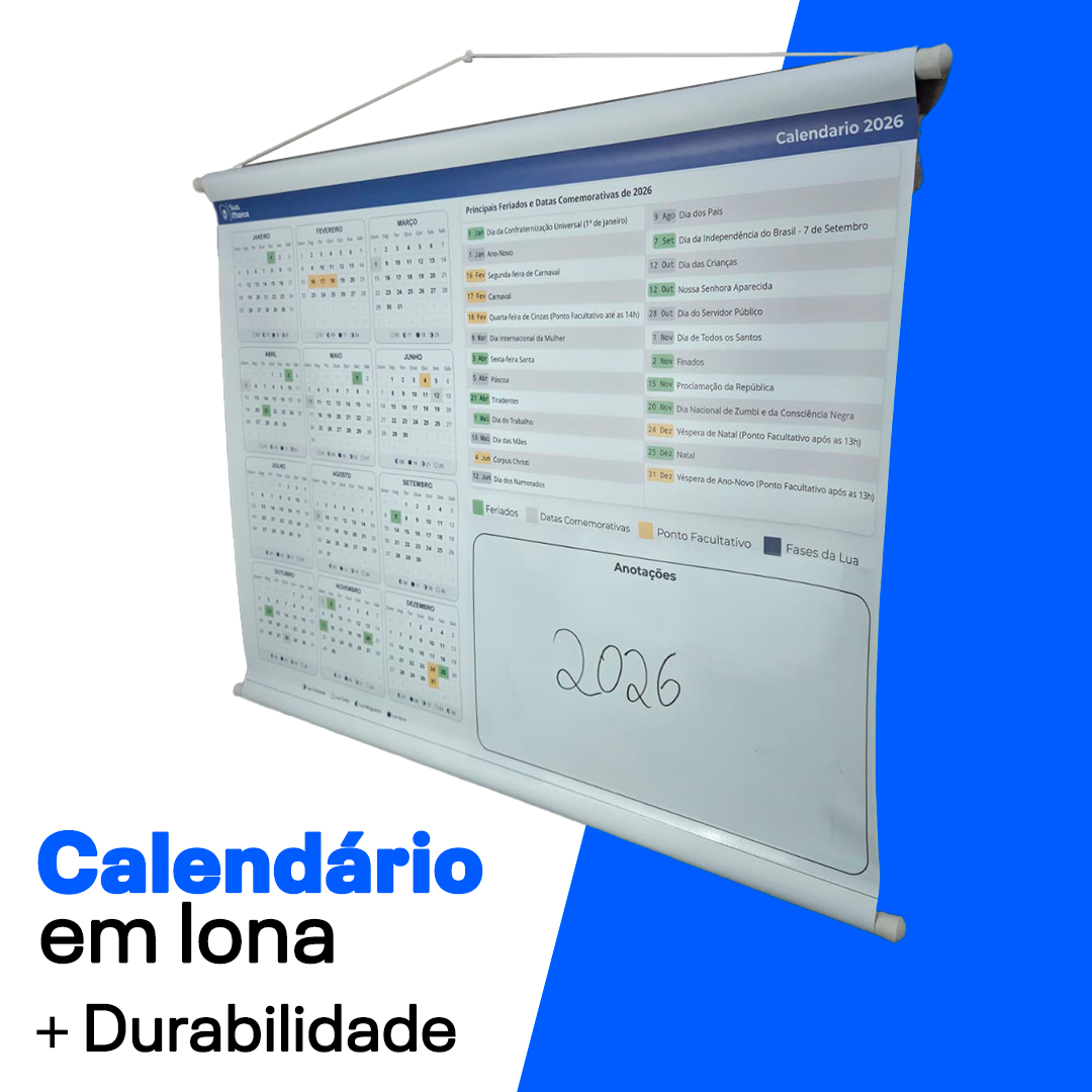 📅 Calendário 2026 em Lona – Organização inteligente para o seu ano!